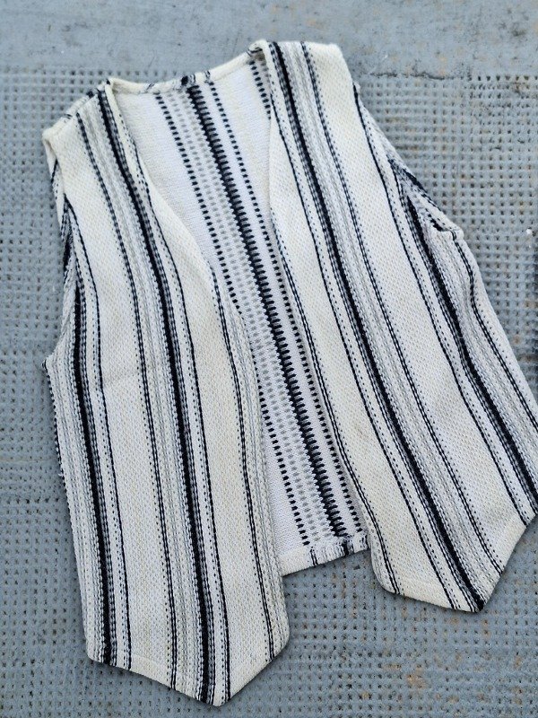 𝗗𝗲𝘀𝗰𝗿𝗶𝗽𝗰𝗶𝗼𝗻: Chaleco de hilo, con un hermoso diseño combinado con líneas grises y azules, color hueso. Hermoso