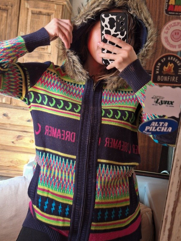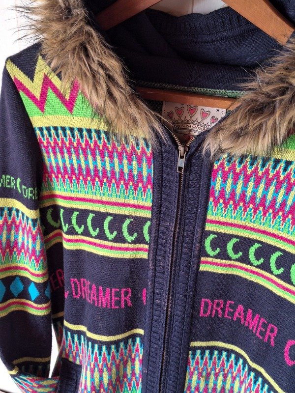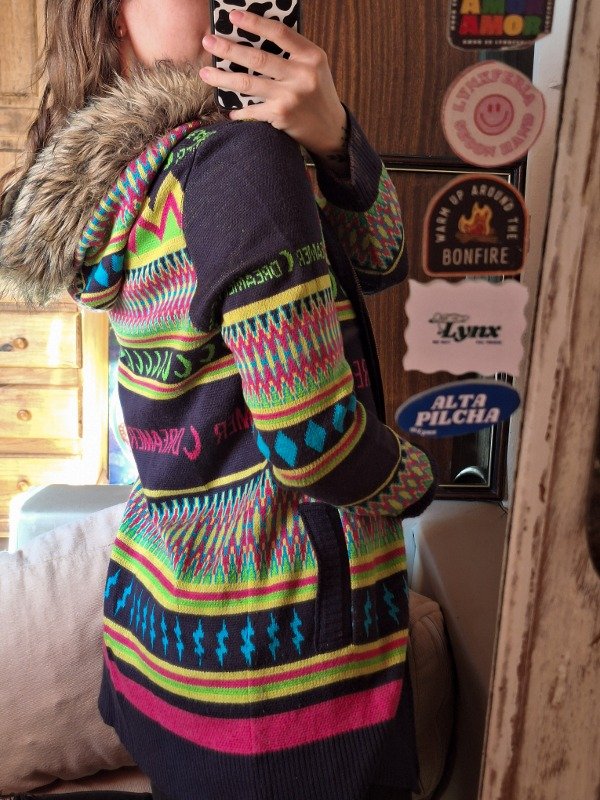 𝗗𝗲𝘀𝗰𝗿𝗶𝗽𝗰𝗶𝗼𝗻: Campera de coleres modelo largo, capucha con pelo, es tan linda! Con bolsillos, Detalle: en la parte del cierre tiene como pequeñas manchas de lavandera pareciera, pero al estar solo en todo el cierre parece que es así la campera (Apreciar en fotos)