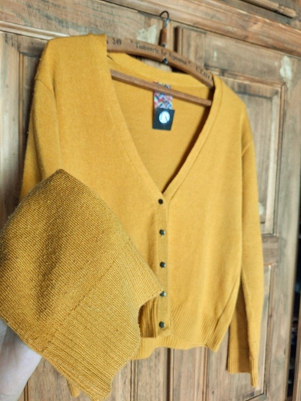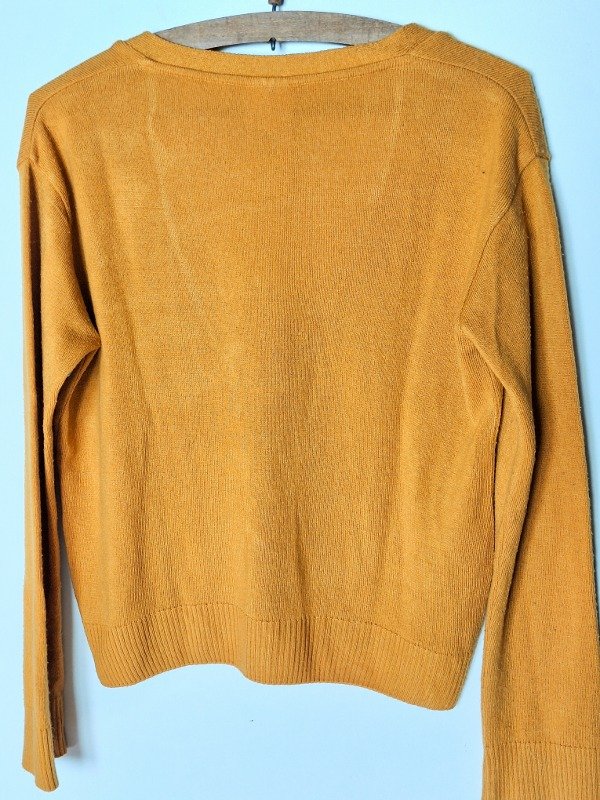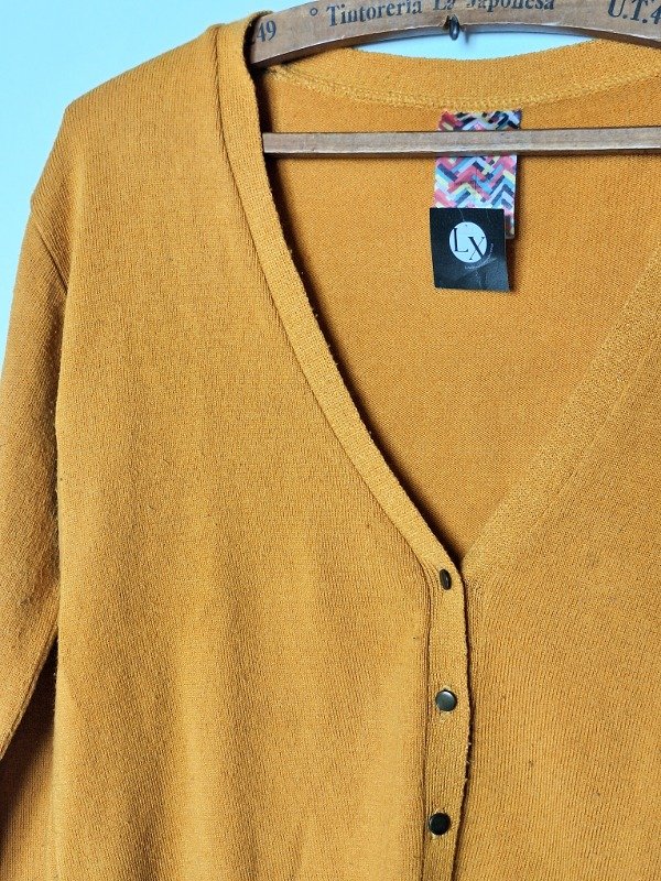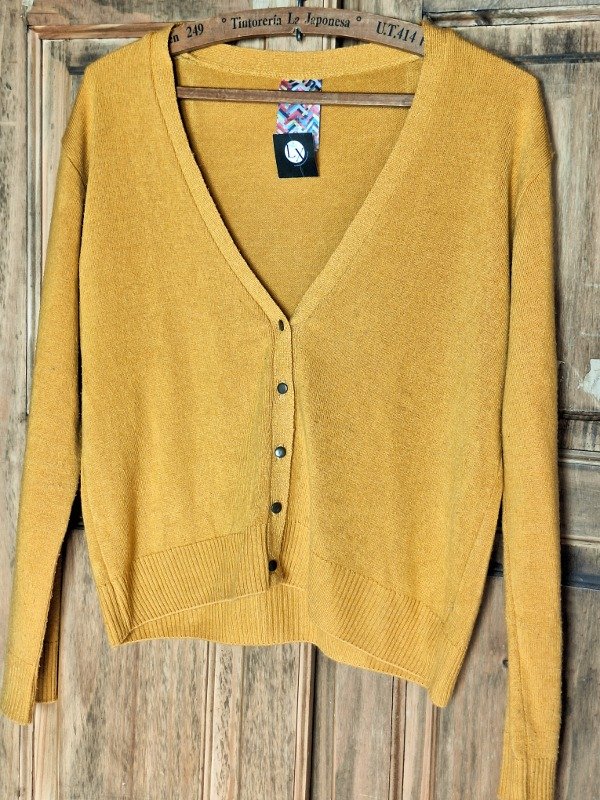 𝗗𝗲𝘀𝗰𝗿𝗶𝗽𝗰𝗶𝗼𝗻: Camperita estilo cardigan en tono mostaza, bien liviana y calentita, escote en V pronunciado con botones que le dan su toque.