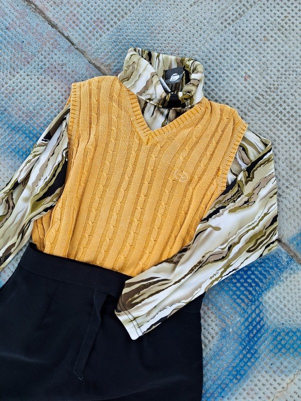 𝗗𝗲𝘀𝗰𝗿𝗶𝗽𝗰𝗶𝗼𝗻: Chaleco amarillo de lana, el color no es tan fuerte, ideal para usar solo como remera, o en invierno con poleritas o camisas, muy versátil.