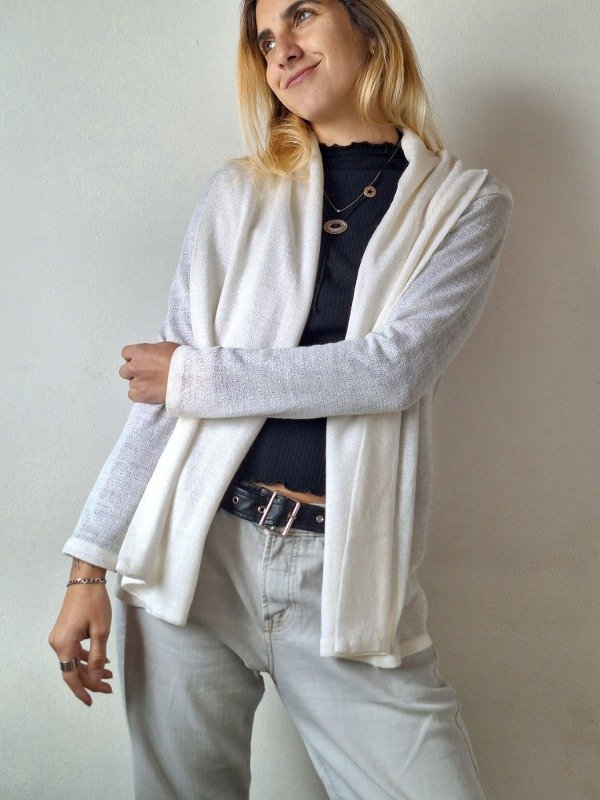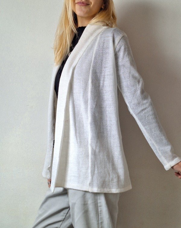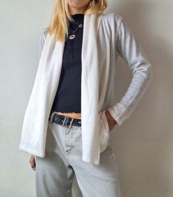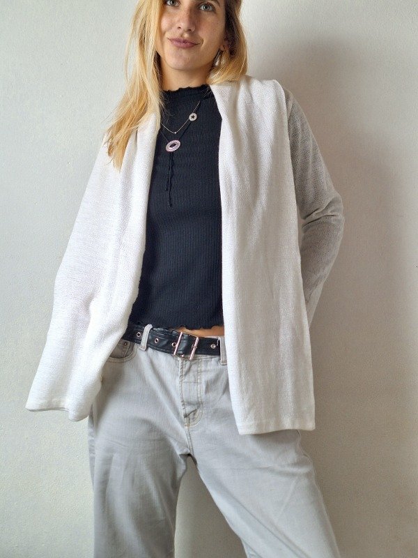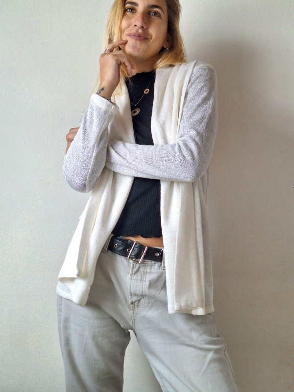 𝗗𝗲𝘀𝗰𝗿𝗶𝗽𝗰𝗶𝗼𝗻: Saco blanco de hilo, practico para sumarlo a cualquier remerita manga larga. Todos los sacos y ponchos las medidas serán aproximadas ya que sede más.