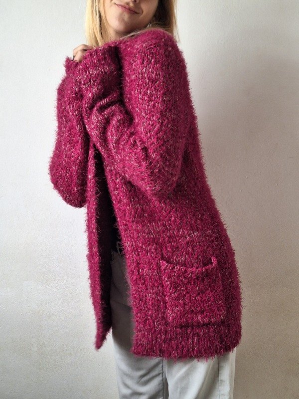 𝗗𝗲𝘀𝗰𝗿𝗶𝗽𝗰𝗶𝗼𝗻: Saco violeta/fuscia, bolsillitos adelante, mega calentito y comodo. Todos los sacos y ponchos las medidas serán aproximadas ya que sede más.
