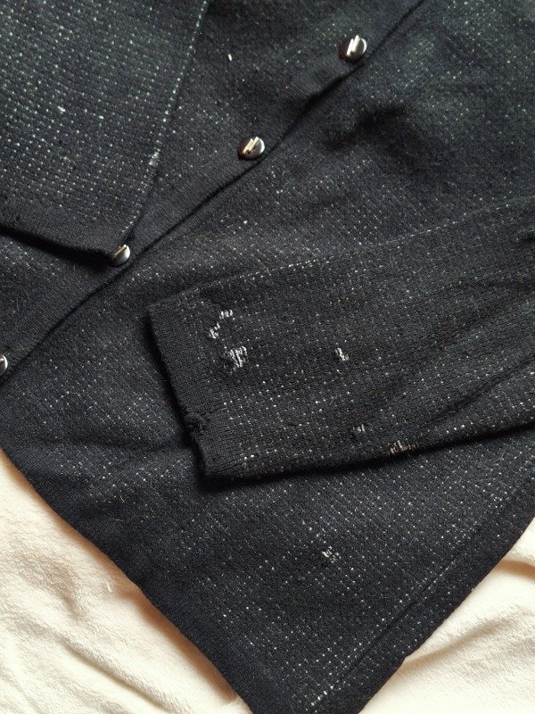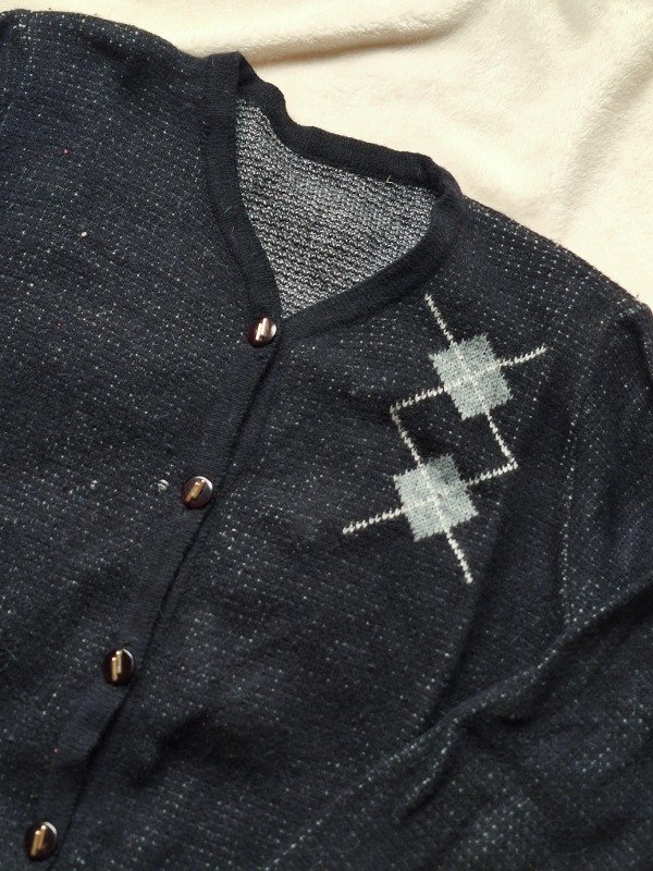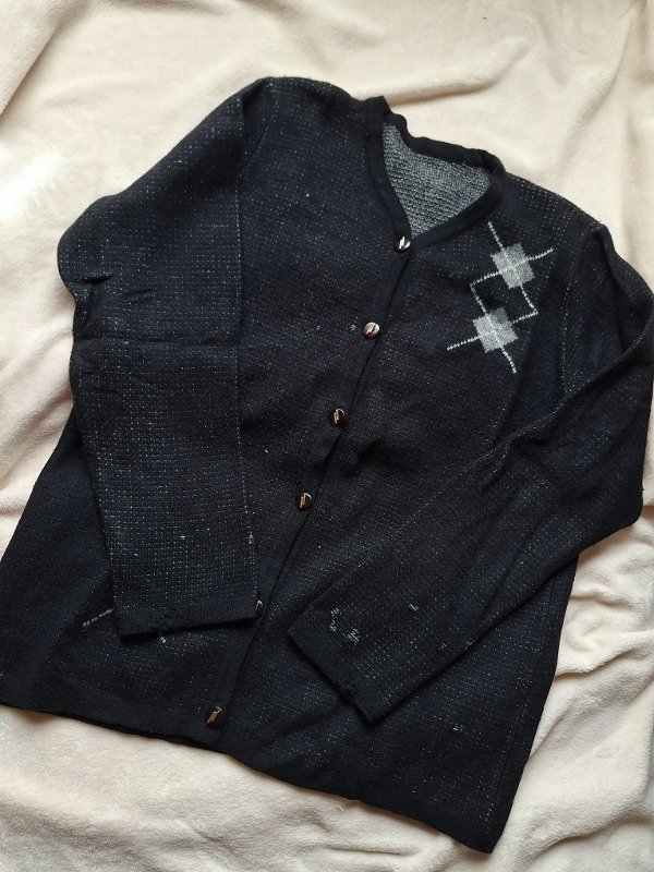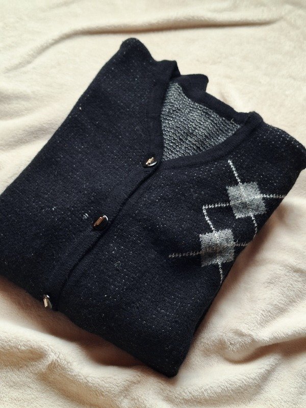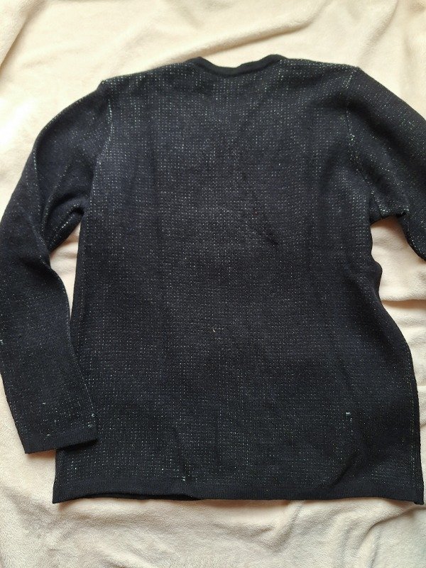 𝗗𝗲𝘀𝗰𝗿𝗶𝗽𝗰𝗶𝗼𝗻: Saco negro de lana, el diseño es con unos triángulos negros, es elastizado.