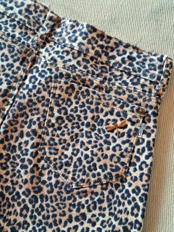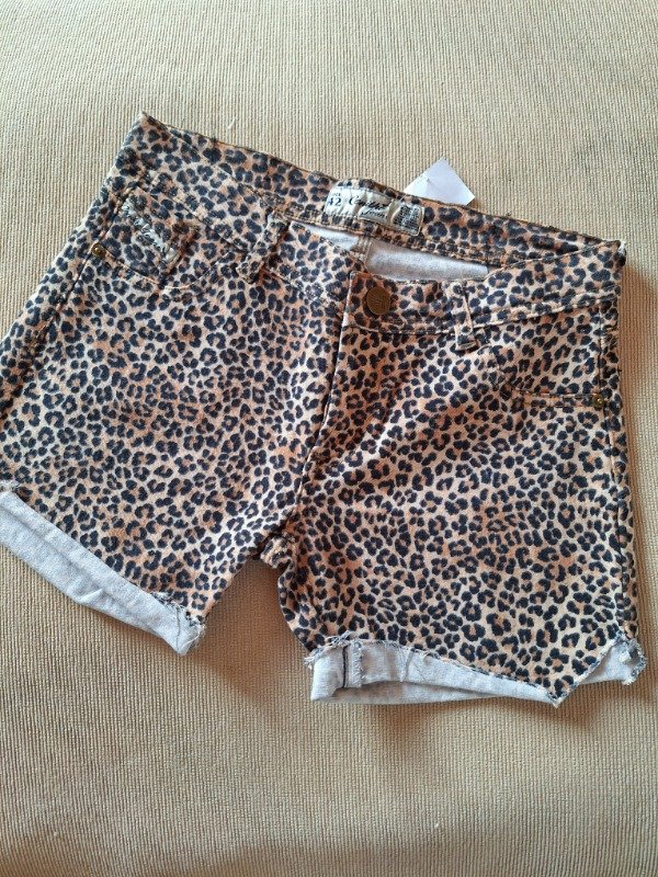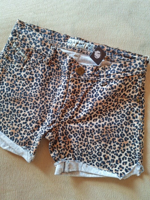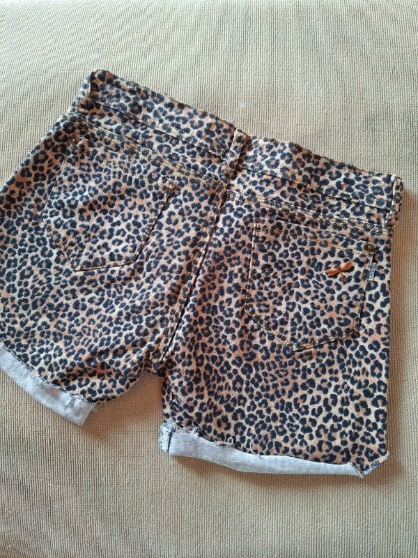 𝗗𝗲𝘀𝗰𝗿𝗶𝗽𝗰𝗶𝗼𝗻: Short de jeans estampado animal print, con bolsillos atras, tiro bajo/medio, elastizado.