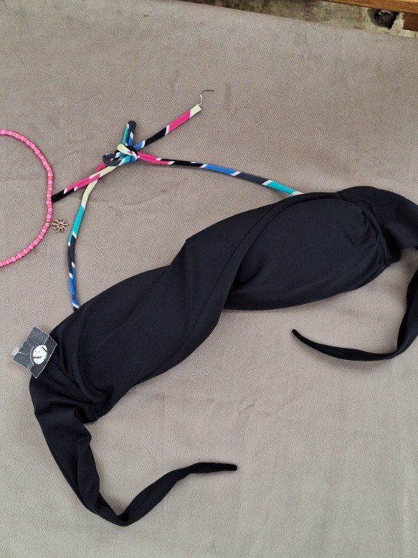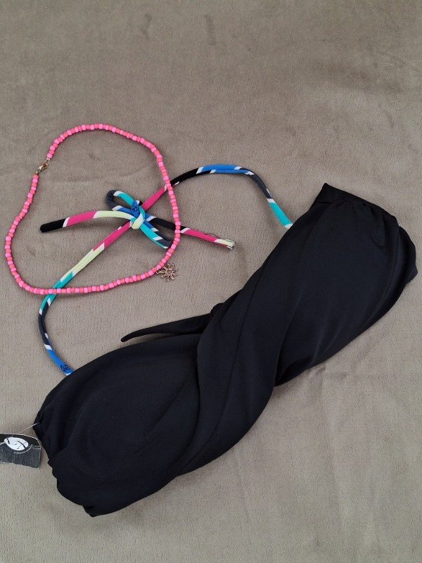 𝗗𝗲𝘀𝗰𝗿𝗶𝗽𝗰𝗶𝗼𝗻: Bikini negra que no te puede faltar este verano! Modelo cruzado, podes usarla como streaples, o con su tira de colores para más comodidad.