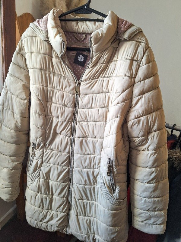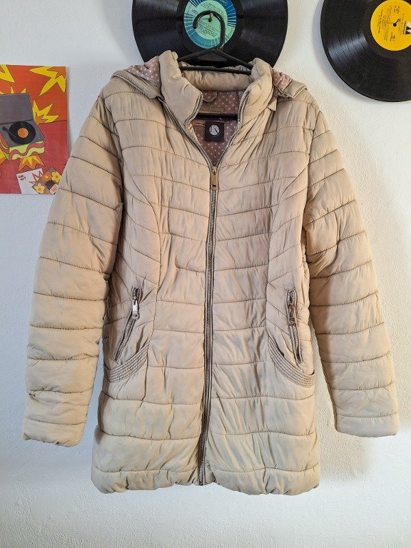 𝗗𝗲𝘀𝗰𝗿𝗶𝗽𝗰𝗶𝗼𝗻: Campera beige canelon, con polar por dentro, bien suave y calentita, con capucha qué se saca.