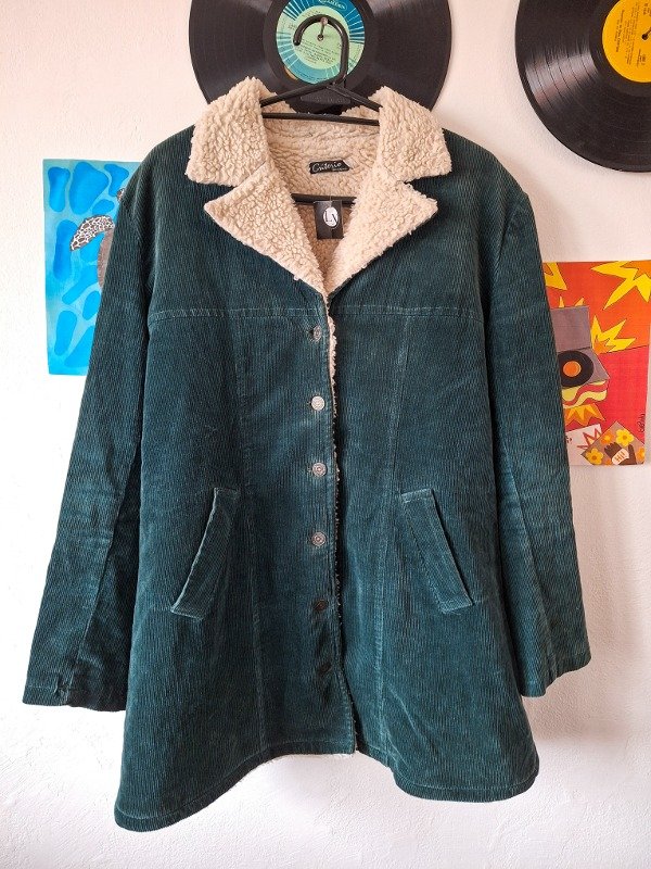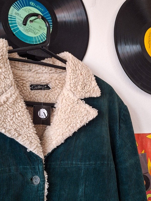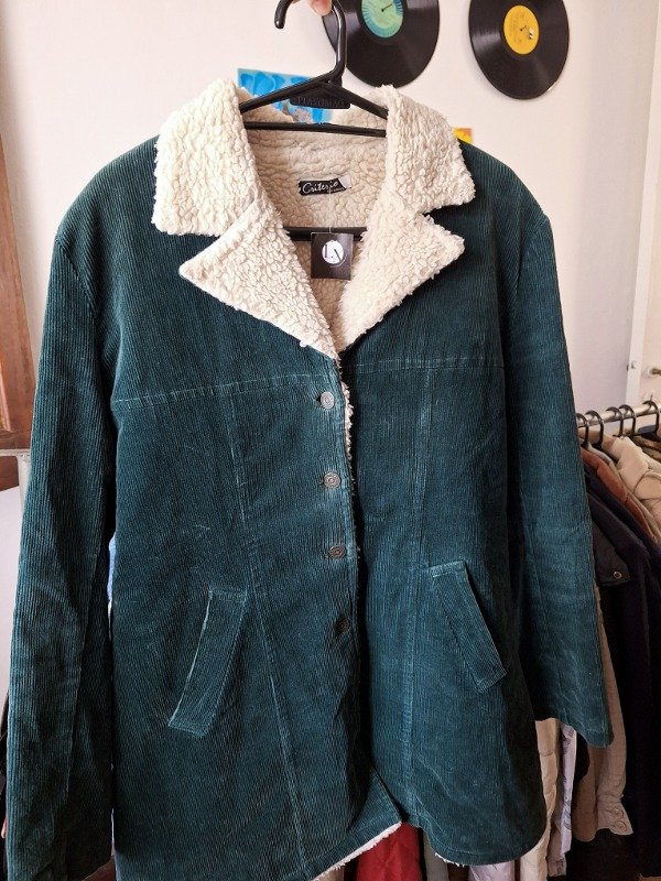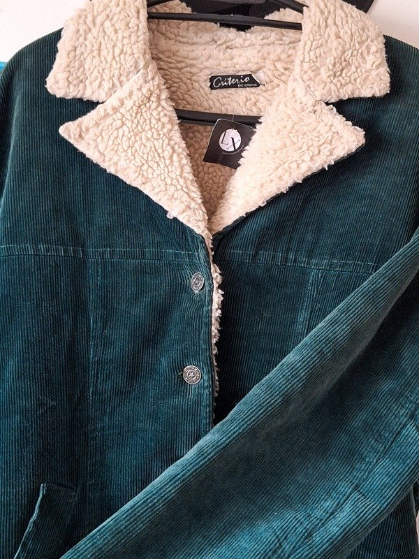 𝗗𝗲𝘀𝗰𝗿𝗶𝗽𝗰𝗶𝗼𝗻: Campera vintage con corderito blanco en el torso, color verde botella hermoso y único, en impecable estado.