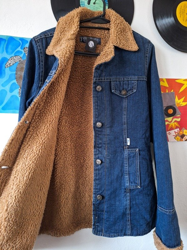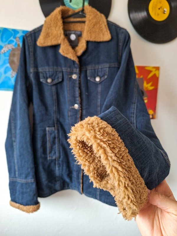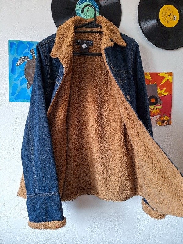 𝗗𝗲𝘀𝗰𝗿𝗶𝗽𝗰𝗶𝗼𝗻: Campera de jeans oscuro, como nueva, con corderito por dentro marrón hasta en las mangas, en impecable estado.
