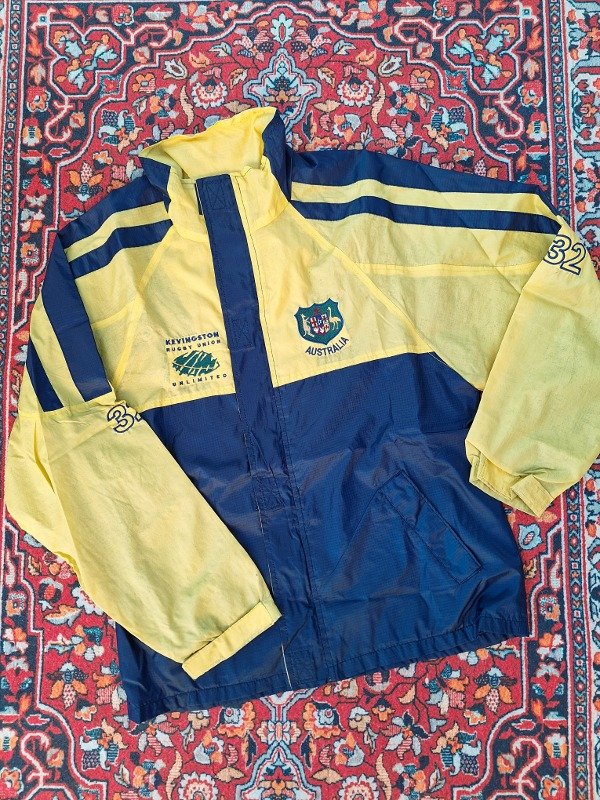 𝗗𝗲𝘀𝗰𝗿𝗶𝗽𝗰𝗶𝗼𝗻: Campera de rugby unión un unlimited, hermosa campera rompe viento, de red por dentro, con cierre más abrojos, en color amarilla y azul, y destacable 32.