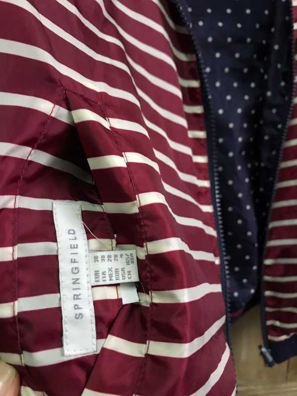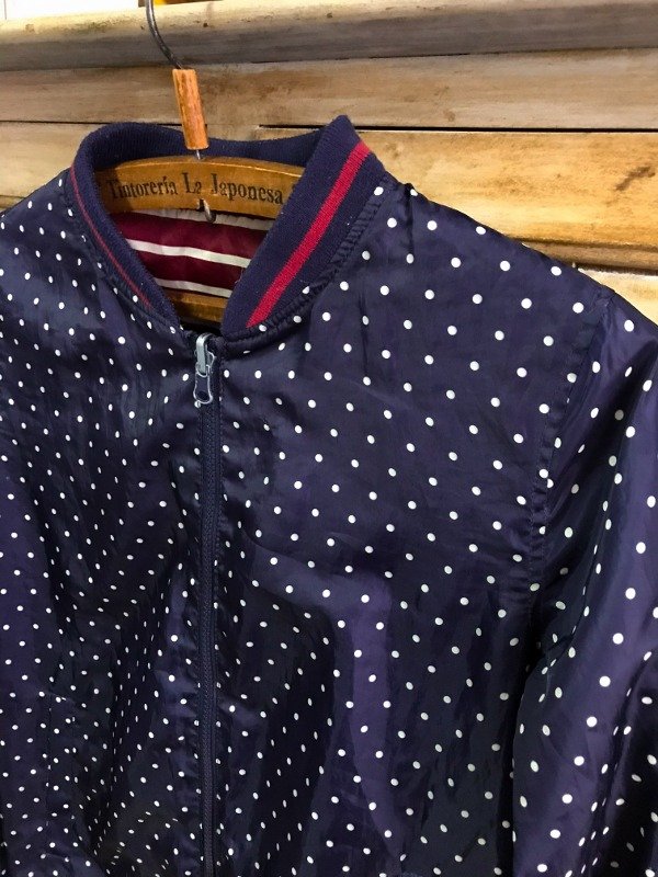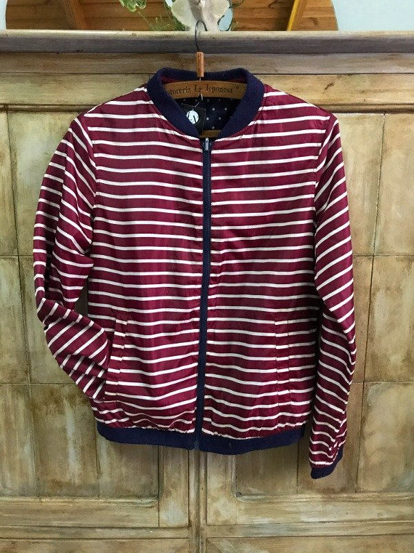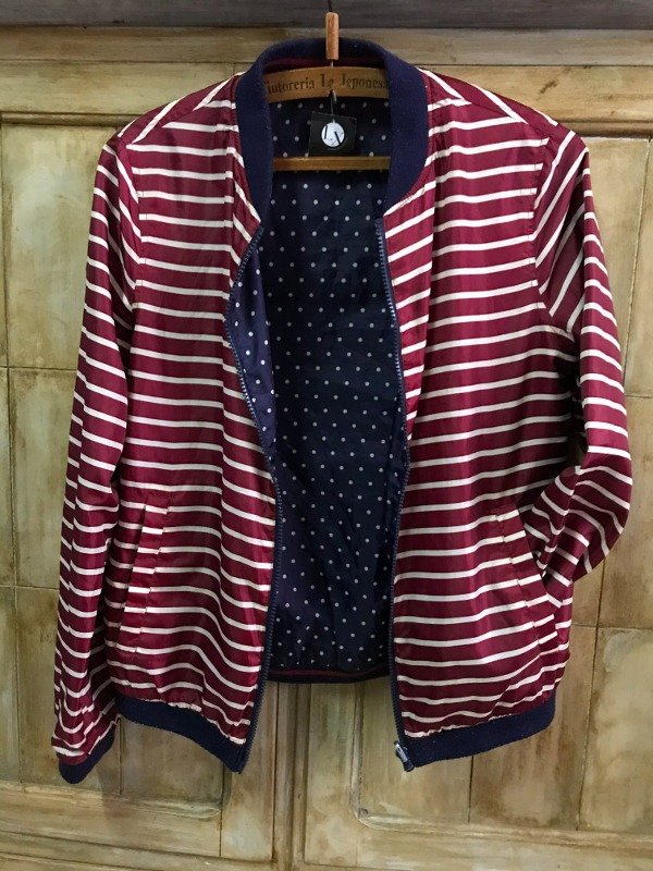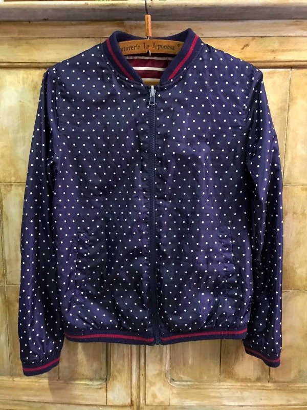 𝗗𝗲𝘀𝗰𝗿𝗶𝗽𝗰𝗶𝗼𝗻: Campera original, es reversible con diseño azul de lunares blancos, y por otro lado fondo bordo y rayas blancas hermosa campera; bordes de las camperas elastizados.
