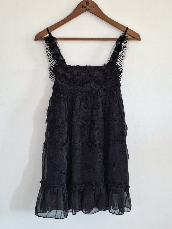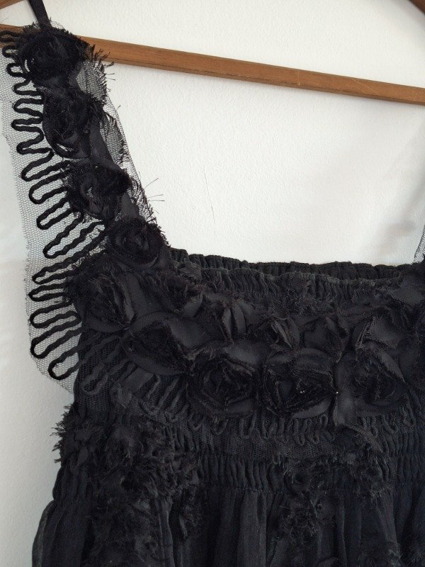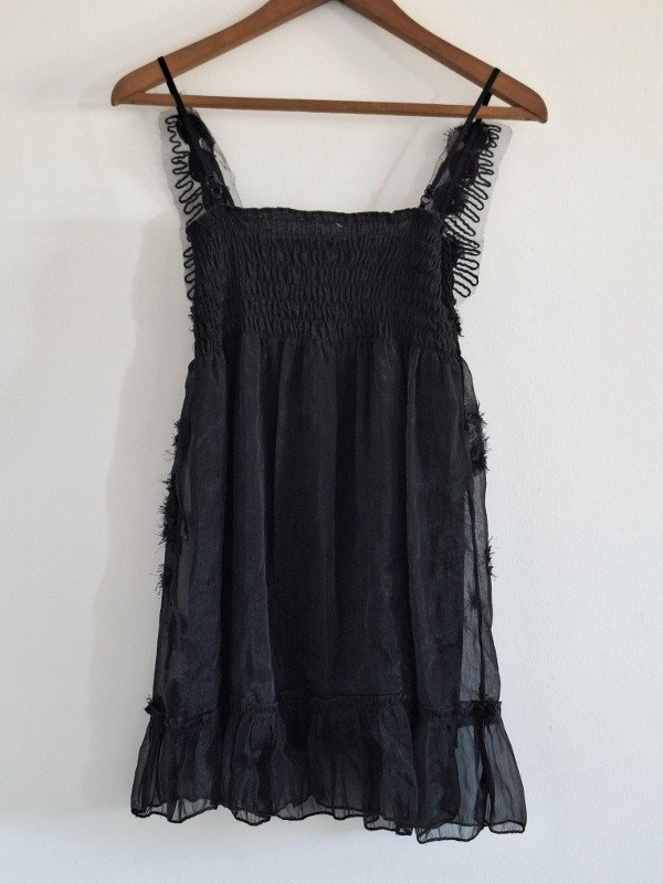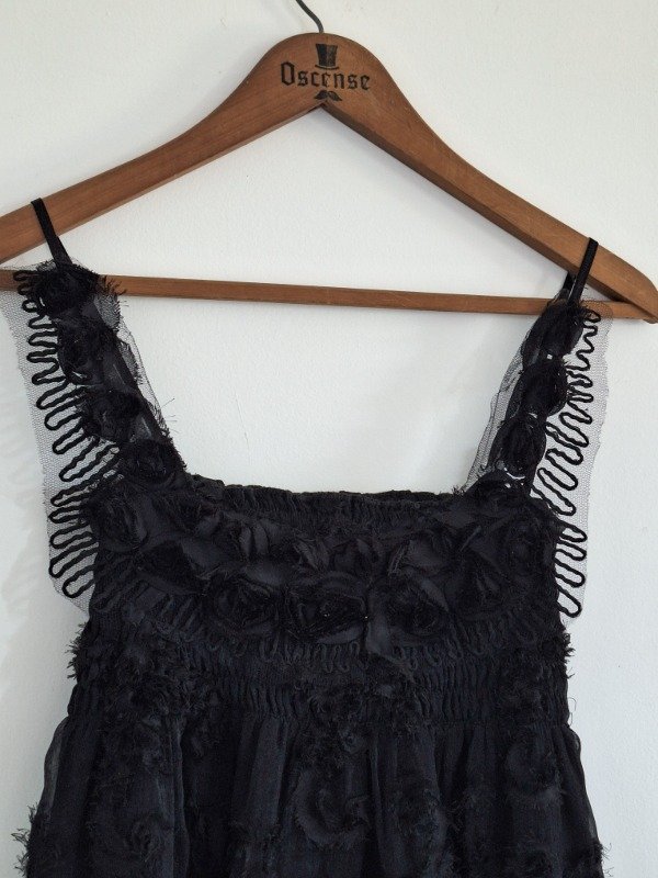 𝗗𝗲𝘀𝗰𝗿𝗶𝗽𝗰𝗶𝗼𝗻: Vestido negro, cubierto de flores negras con un diseño muy particular, vestido original, la parte del busto es toda elastizada.