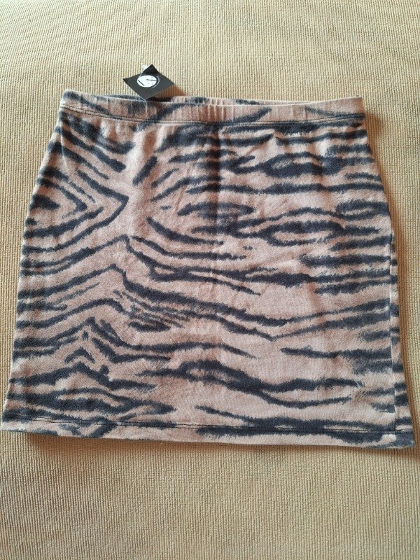 𝗗𝗲𝘀𝗰𝗿𝗶𝗽𝗰𝗶𝗼𝗻: Mini de cebra en tonos marróncitos, modelo tubo al cuerpo, es elastizada.