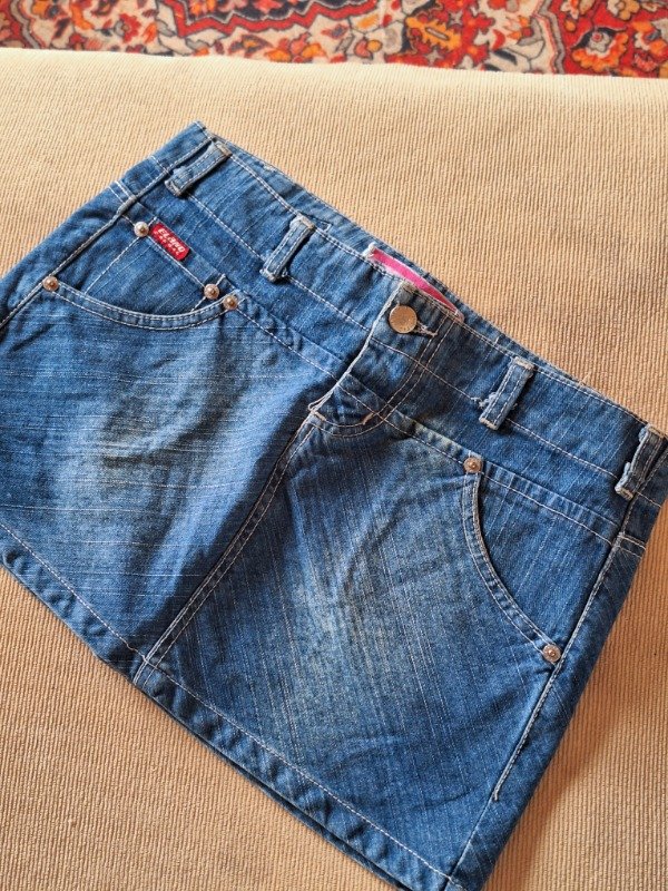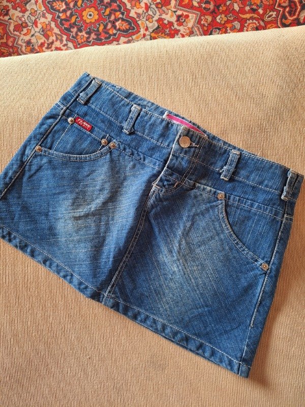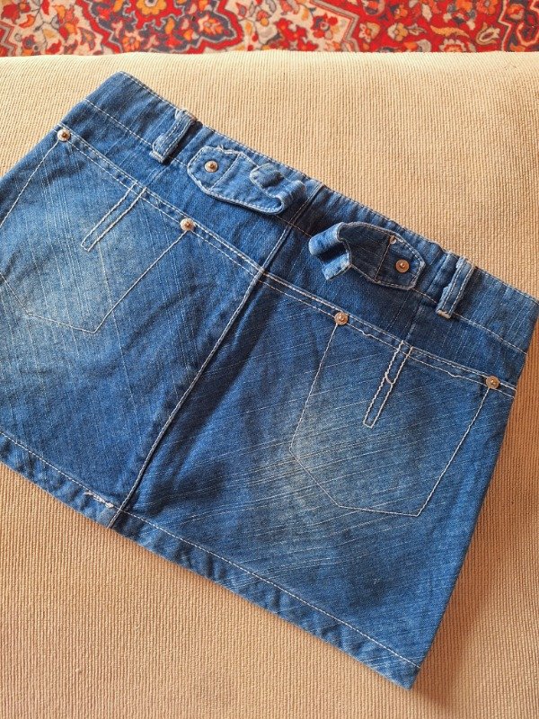 𝗗𝗲𝘀𝗰𝗿𝗶𝗽𝗰𝗶𝗼𝗻: Mini en tendencia, tiro bajo con pasa cinto, y detalles atrás que la hacen única. Ideal para reformar o agregarle lo que gustes.