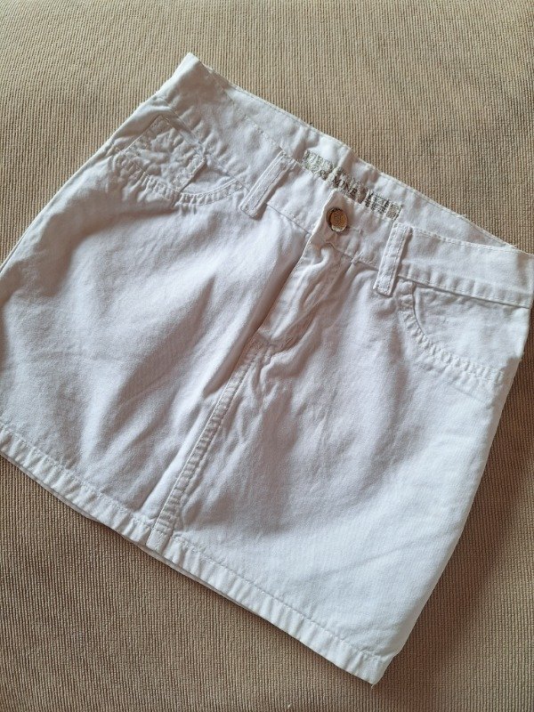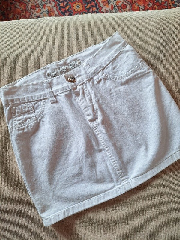 𝗗𝗲𝘀𝗰𝗿𝗶𝗽𝗰𝗶𝗼𝗻: Mini blanca, sin bolsillos adelante, con bolsillos atrás. Hermosa y muy versátil de usar.