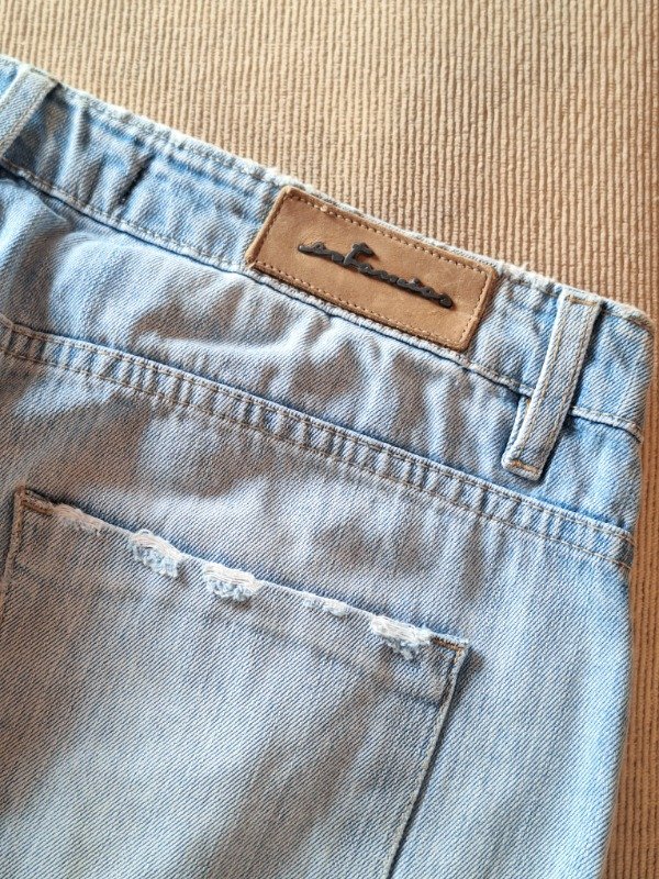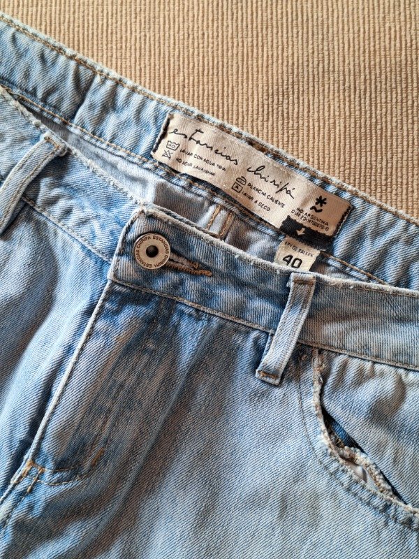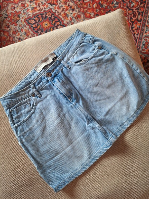 𝗗𝗲𝘀𝗰𝗿𝗶𝗽𝗰𝗶𝗼𝗻: Pollera de jeans con bolsillos adelante y atrás, Jeans claro.