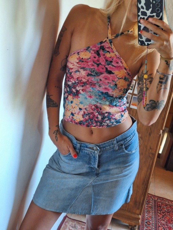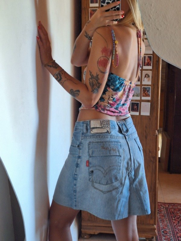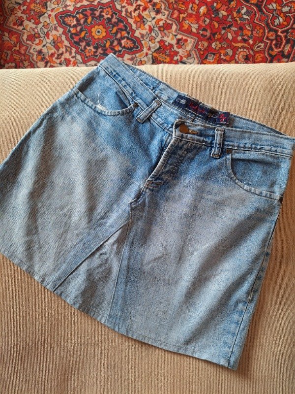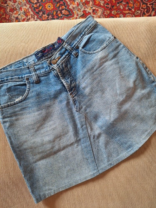 𝗗𝗲𝘀𝗰𝗿𝗶𝗽𝗰𝗶𝗼𝗻: Pollera de jeans, modelo vintage,bolsillos adelante y atrás.