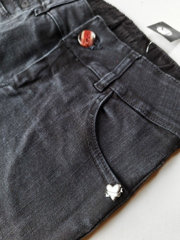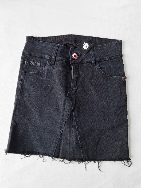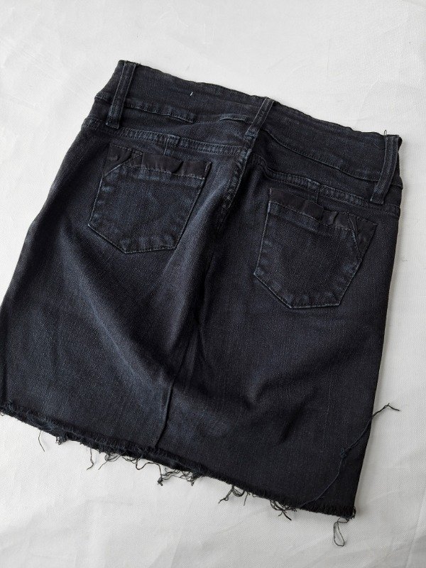 𝗗𝗲𝘀𝗰𝗿𝗶𝗽𝗰𝗶𝗼𝗻: Pollera de jeans negra, con detalles que le dan su toque, bolsillos adelante y atrás.