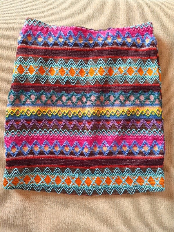 𝗗𝗲𝘀𝗰𝗿𝗶𝗽𝗰𝗶𝗼𝗻: Pollera de colores, diseño de líneas y rombo con hilo, es al cuerpo y queda hermosa puesta.