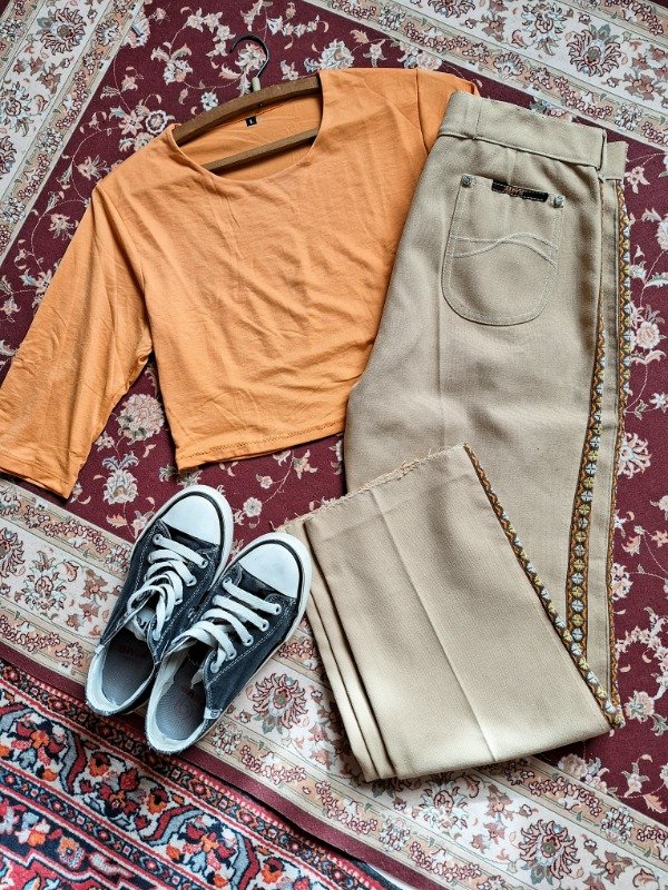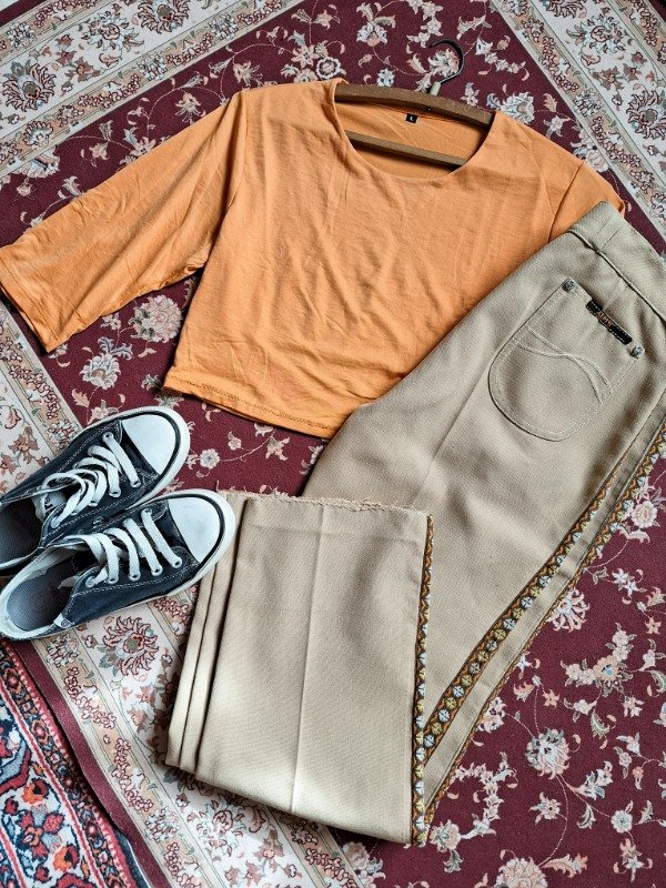 𝗗𝗲𝘀𝗰𝗿𝗶𝗽𝗰𝗶𝗼𝗻: Pantalón camel, tiro alto con un borde precioso que le da su toque, lleva pasa cintos, y mini bolsillos atrás.