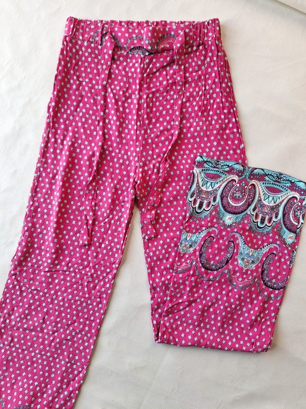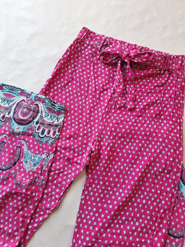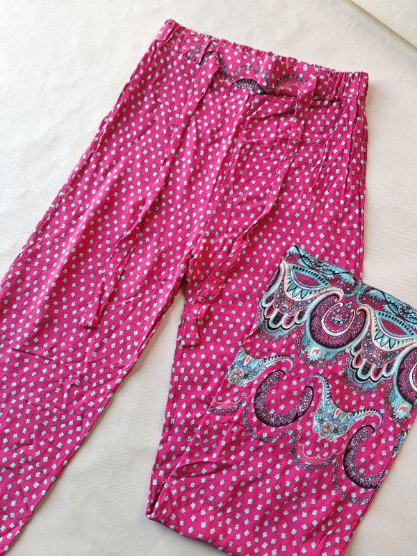 𝗗𝗲𝘀𝗰𝗿𝗶𝗽𝗰𝗶𝗼𝗻: Palazo de fibrana fucsia/rosa, con un estampado hermoso, tiene tiritas para hacer un moño, más elástico en la cintura, cómodo y sin dudas te salva con cualquier remerita lisa ya estás list@.