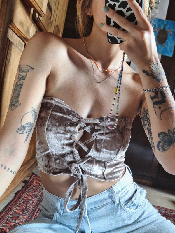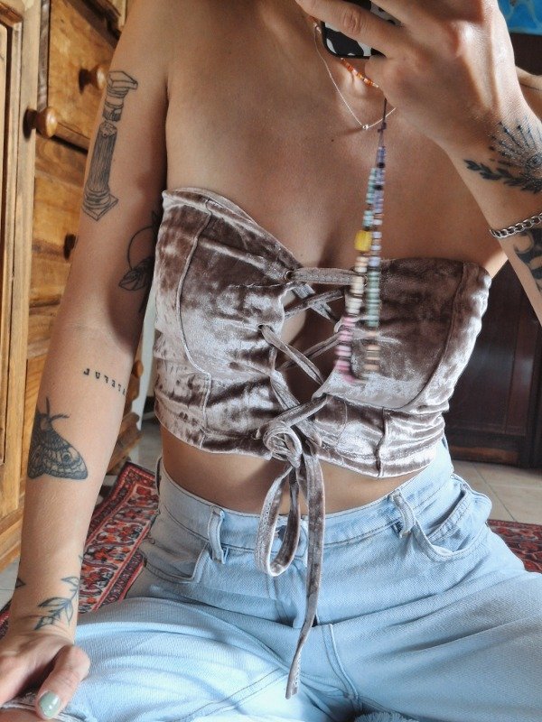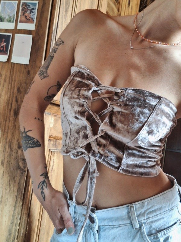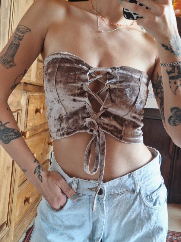 𝗗𝗲𝘀𝗰𝗿𝗶𝗽𝗰𝗶𝗼𝗻: Corset elastizado, escote corazón, con una función de ajustado en cruz, ideal para ajustar a gusto y medida.