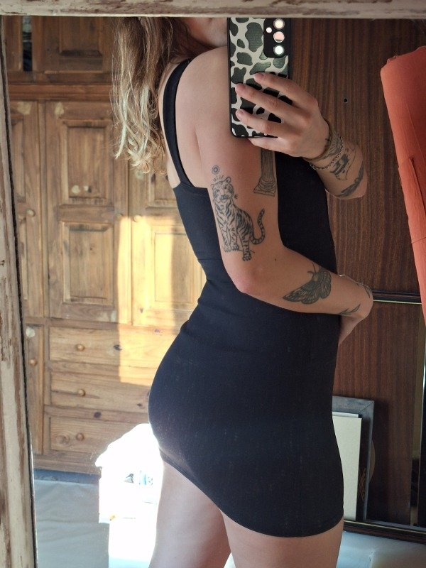 𝗗𝗲𝘀𝗰𝗿𝗶𝗽𝗰𝗶𝗼𝗻: Vestido al cuerpo, un modelo hermoso y superar cómodo, tiene un calce increíble! Lo he usado con tops arriba para que me quede solo la pollera también por su comodidad increíble. Detalle: Es de bengalina, por lo que en la parte del top se le están saliendo para afuera los cortesitos de elástico. No afecta en nada pero lo menciono igual.