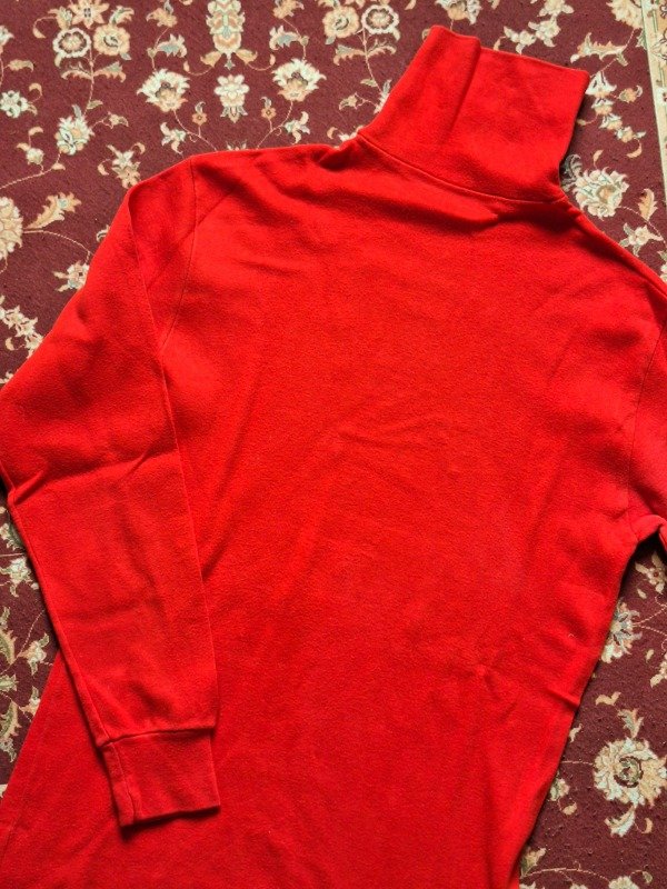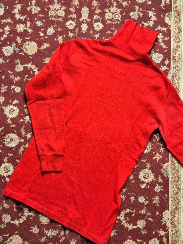 𝗗𝗲𝘀𝗰𝗿𝗶𝗽𝗰𝗶𝗼𝗻: Polera roja clásica, es un algodón grueso, cuello alto que se dobla a gusto.