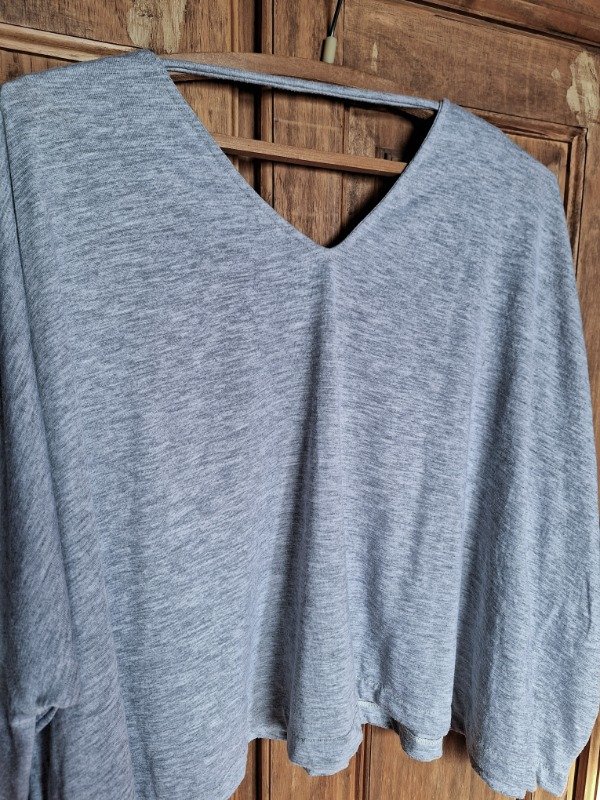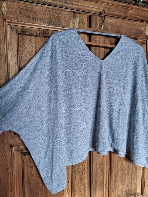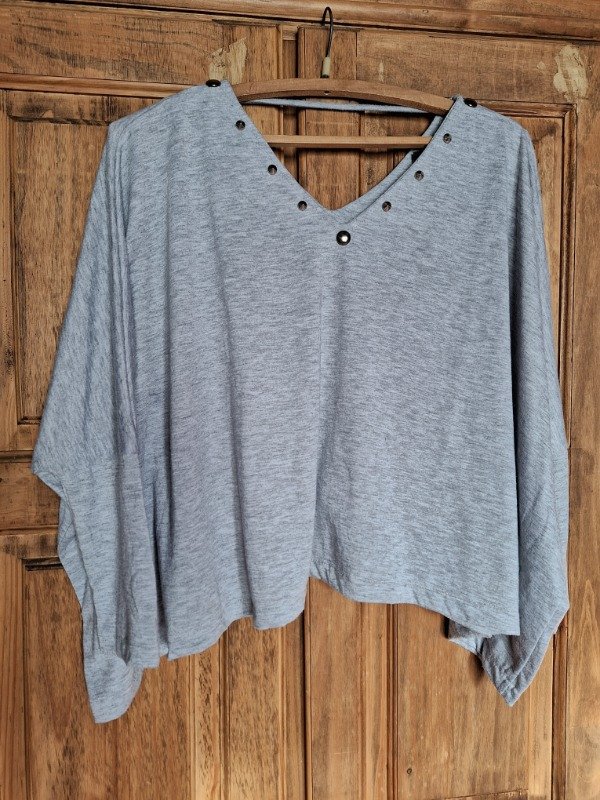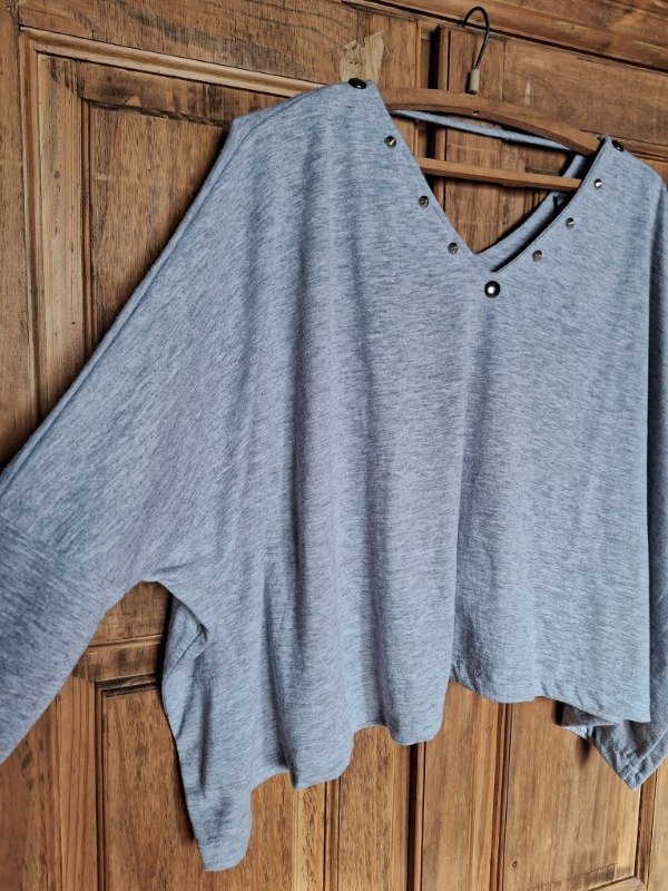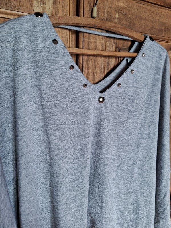 𝗗𝗲𝘀𝗰𝗿𝗶𝗽𝗰𝗶𝗼𝗻: Reme gris amplia, escote en V con borde de tachitatas. Como nueva