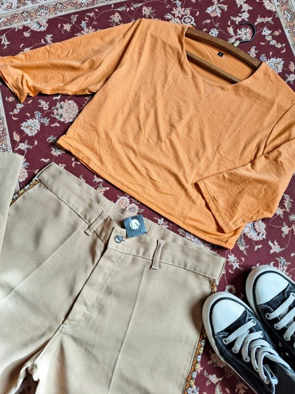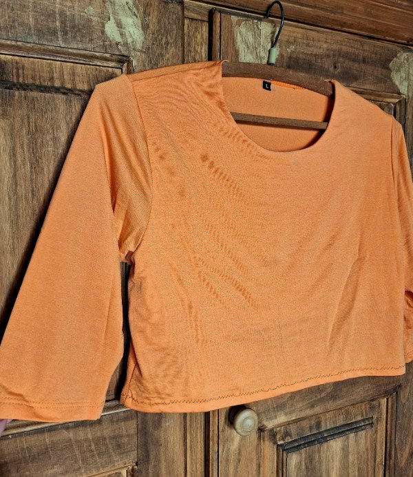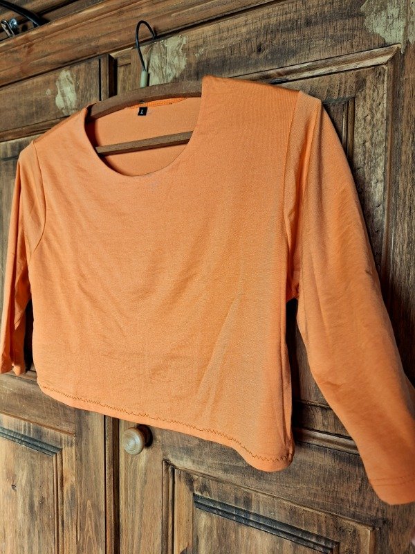 𝗗𝗲𝘀𝗰𝗿𝗶𝗽𝗰𝗶𝗼𝗻: Top naranja precioso, mangas tres cuartos, te completan el conjunto.