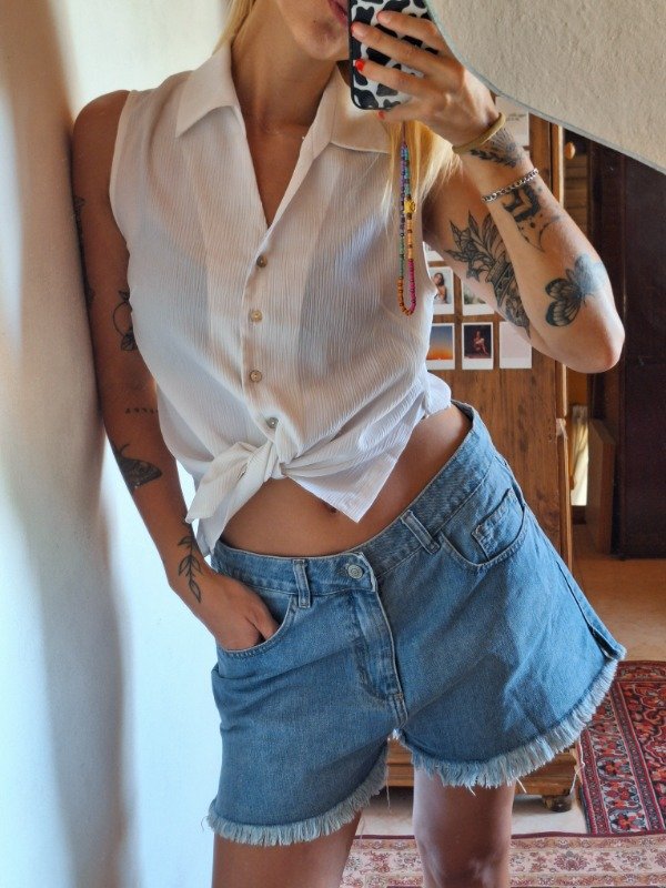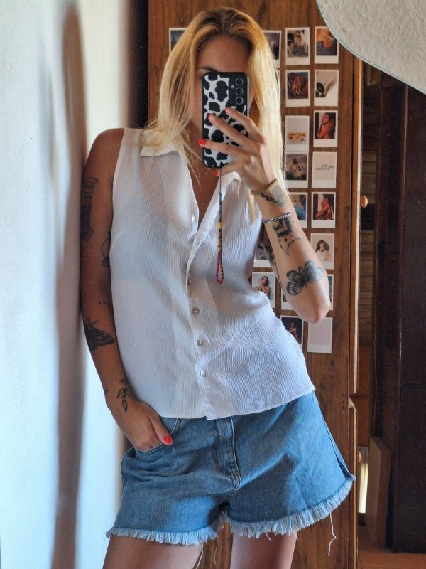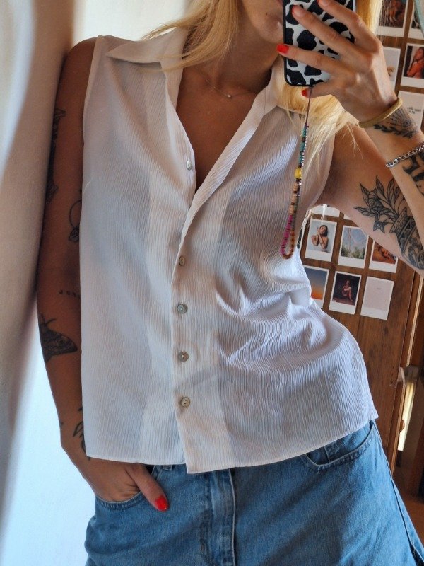 𝗗𝗲𝘀𝗰𝗿𝗶𝗽𝗰𝗶𝗼𝗻: Blusa estilo chalequito en tendencia, con cuello y varias formas de usar y combinar.