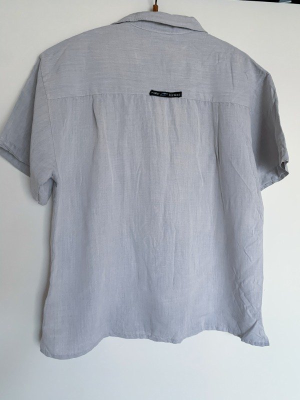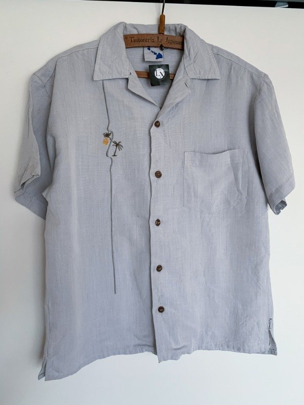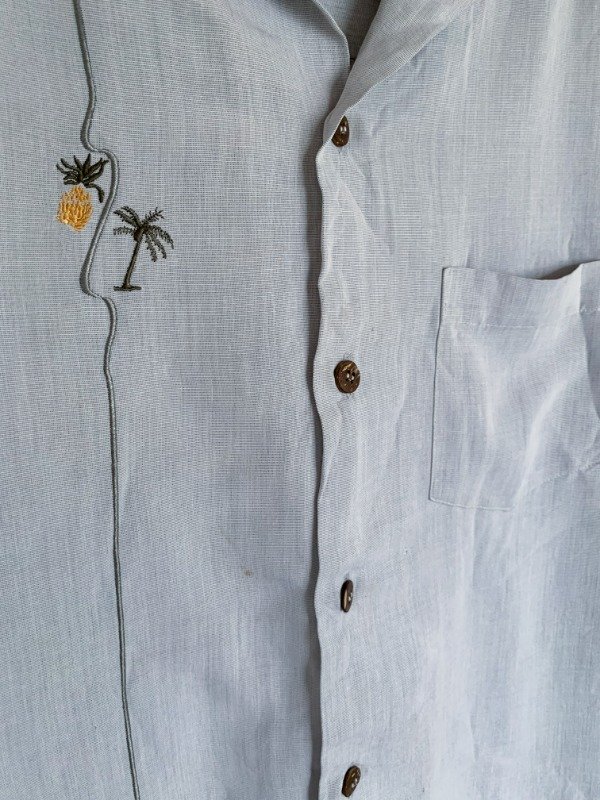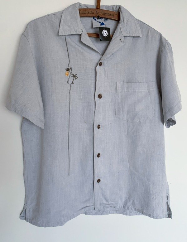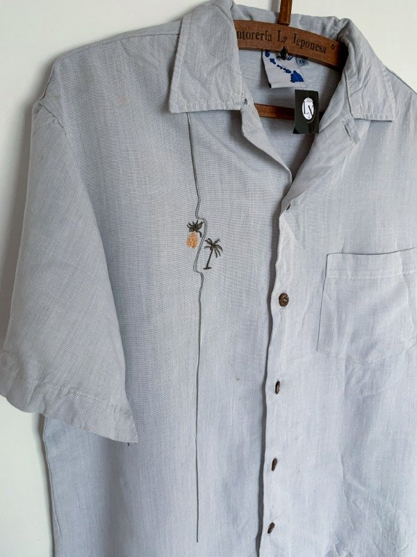 𝗗𝗲𝘀𝗰𝗿𝗶𝗽𝗰𝗶𝗼𝗻: Camisa única, es simple pero con un detalle bordado de una palmera y una piña que le da todo su toque, en tono es entre un celestito muy pastel y gris.